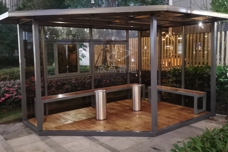 越來越多的吸煙亭走進我們的生活中,在很多公共場所我們都能見到吸煙亭,如火車站、汽車站、飛機候車廳、公園、商業廣場等。還有就是工廠,工地等地方都可以看到吸煙亭,有了吸煙亭可以給愛好抽煙的市民朋友一個抽煙的好地方,也能提高大家的環境意識,更能有效預防一些火災等情況的發生。但是大家在選購吸煙亭的時候我們也需要注意一些細節問題,下面給大家具體的分析下: