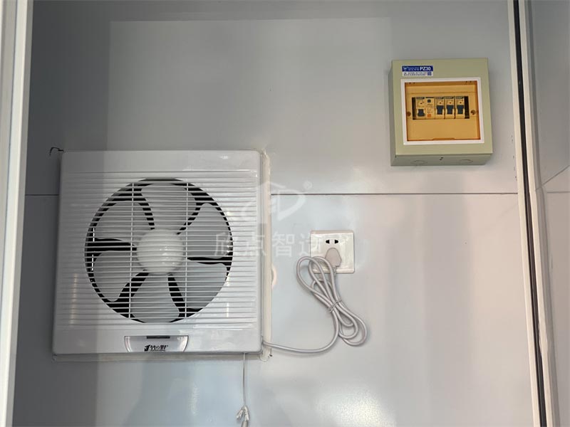 移動廁所內部配置:排風扇、配電箱、插座