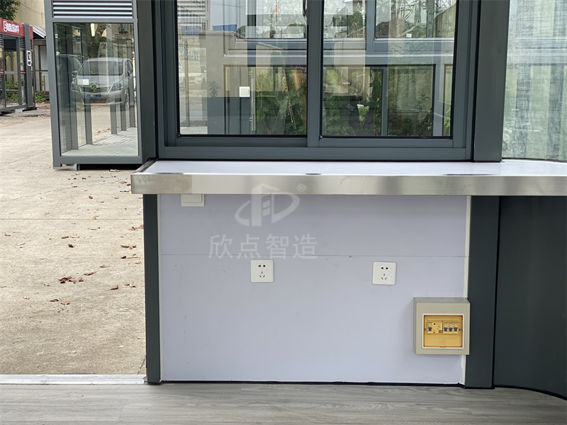 室內包含工作臺、插座、開關、LED燈、配電箱、電路等設備。真正的做到拎包可入住。崗亭通常是由專業公司提供定制服務,還可以根據場地類似景區環境來設計款式。