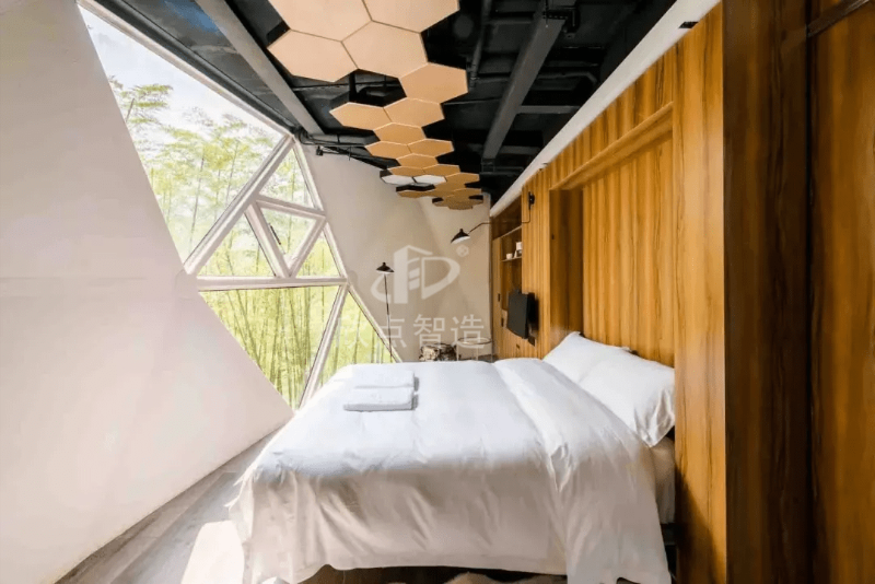 一天生產一個太空艙民宿的生產效率也相當可觀。全國三天可達一室一衛一陽臺的布局28個平方的覆蓋范圍也很實用。